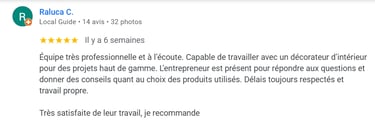 La satisfaction de nos clients réside au cœur de notre philosophie, c'est pourquoi nous vous accompagnons dans votre projet de rénovation en vous offrant un devis détaillée et des conseils personnalisées.