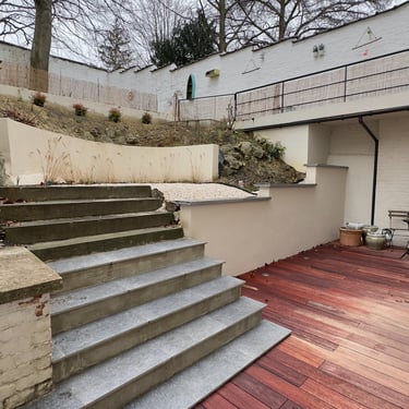 À l’extérieur, nous avons rénové la terrasse et les escaliers, créant un espace accueillant et harmonieux entre intérieur et extérieur.